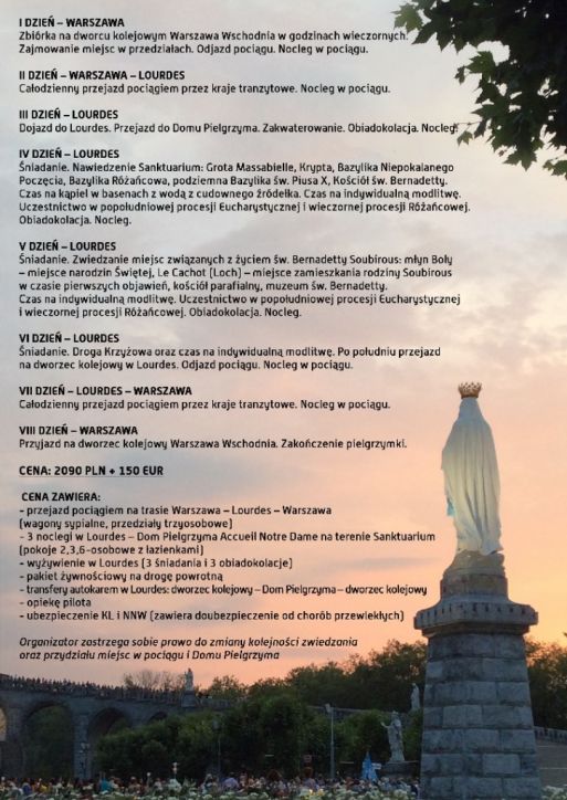Uwaga zmiana terminu pielgrzymki na 19-22.09.2017r. - Przelot samolotem - Koszt pozostaje bez zmian.